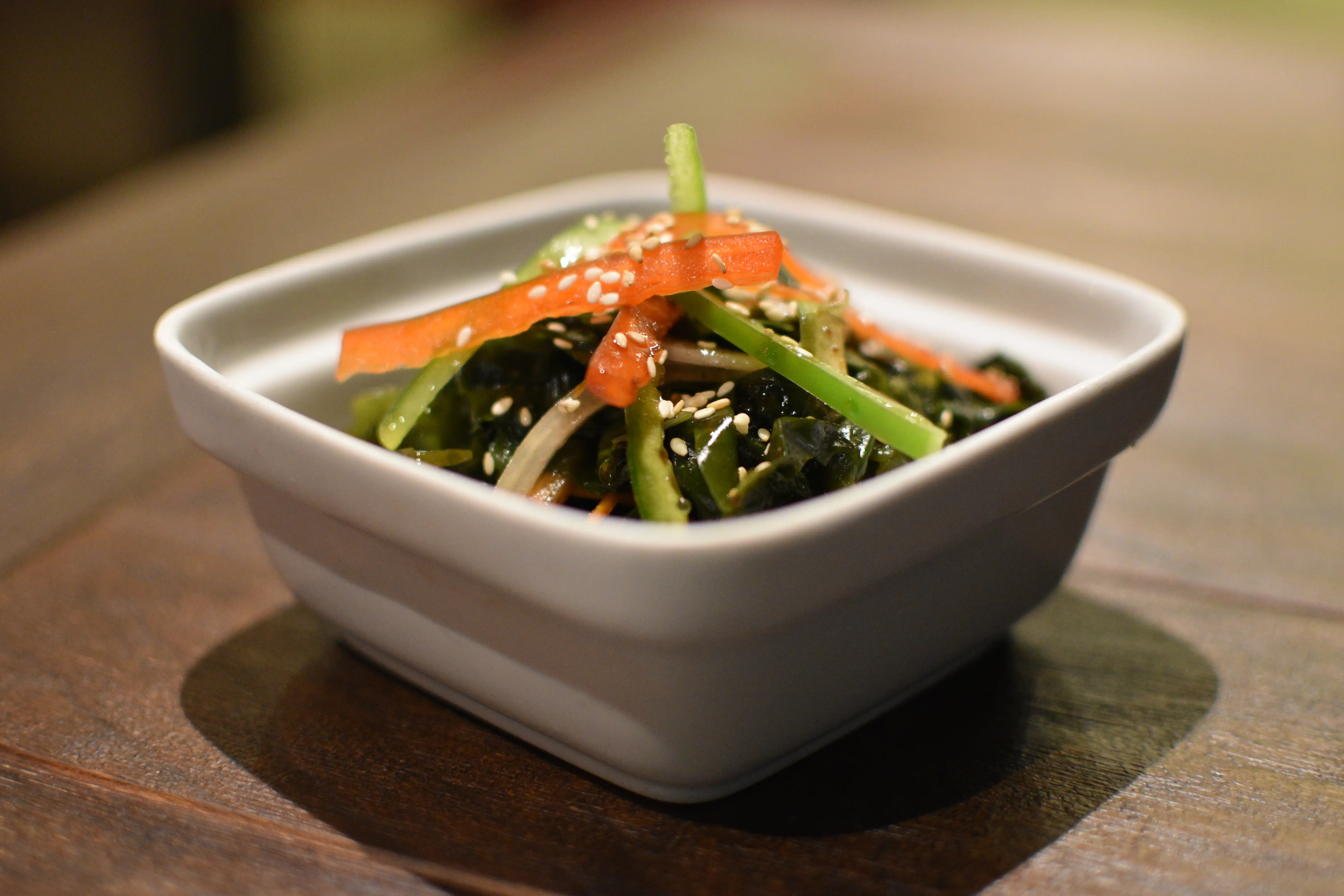 Ensalada Zoe Algas, zanahoria, cebolla, pimiento verde, pimiento rojo, sésamo y salsa especial. 5,75€